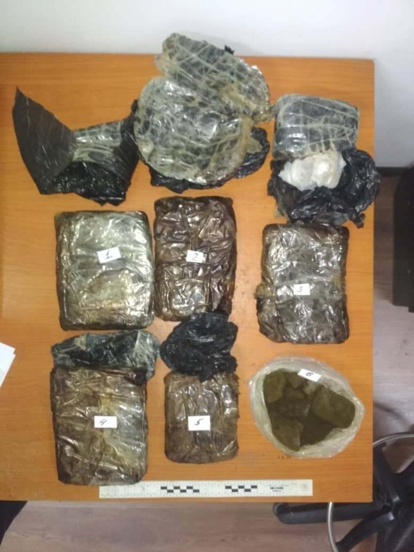 Андан кийин ыкчам маалыматтын негизинде 1972-жылы туулган М.Б. аттуу жарандын жашаган жерине тергөө жана издөө иш-чаралары жүргүзүлгөн. Кара-Суу районундагы айылдардын биринде кызматтык иттерди пайдалануу менен жүргүзүлгөн текшерүүдө короодон 2 килограмм 19 грамм героин, 3 килограмм 972 грамм гашиш, 16 грамм марихуана табылды.