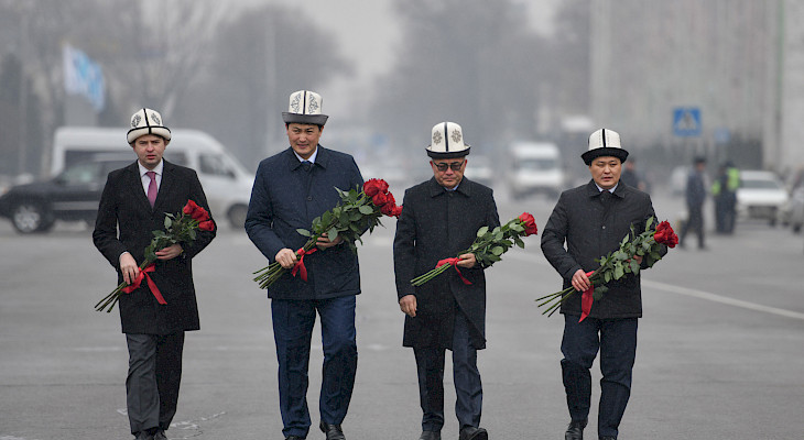 Гүл коюу аземине ошондой эле, биринчи вице-премьер-министр Артём Новиков, вице-премьер-министр Улукбек Кармышаков, Өкмөт Аппаратынын Жетекчиси Жеңишбек Асанкулов катышты.