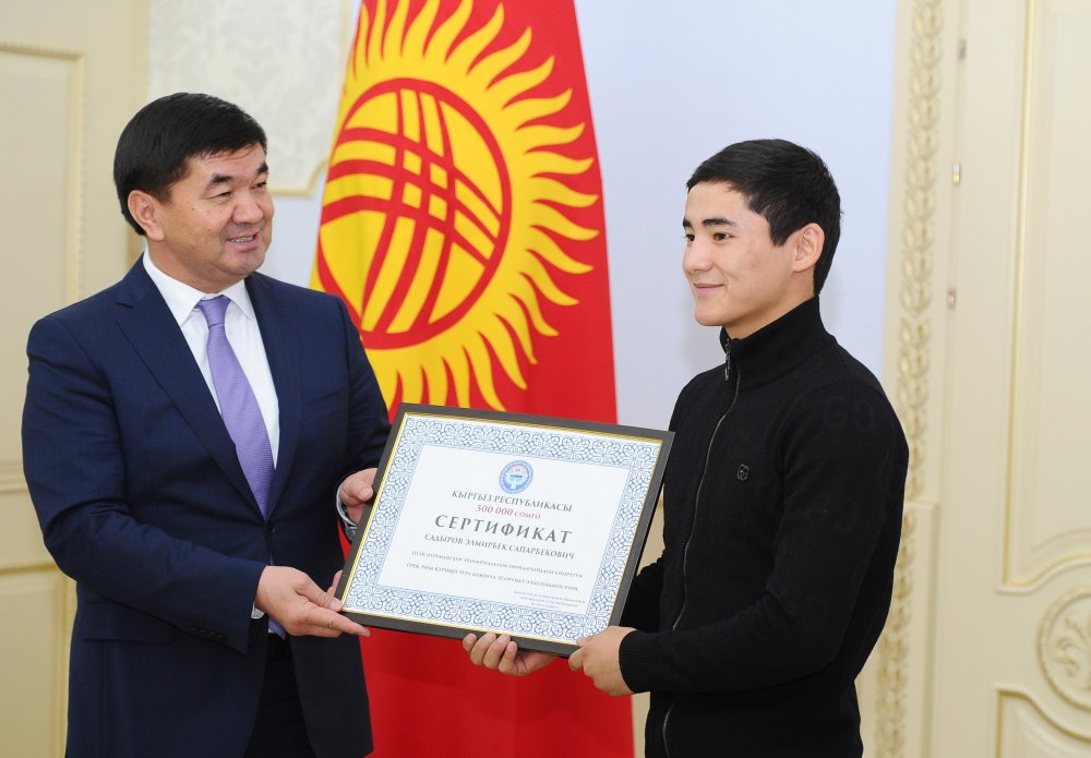 Премьер-министр Мухаммедкалый Абылгазиев спортчуларга ийгиликтерди каалап, аларга жана машыктыруучуларга акчалай сертификаттарды тапшырды.