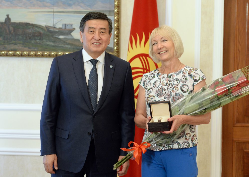 Сооронбай Жээнбеков белгилүү спортчу Татьяна Колпаковага бекем ден соолук, бакубатчылык каалады жана өлкөбүздө спортту жана дене тарбияны өнүктүрүүгө кошкон чоң салымы үчүн ага Кыргыз Республикасынын Президентинин энчилүү саатын белекке берди.
