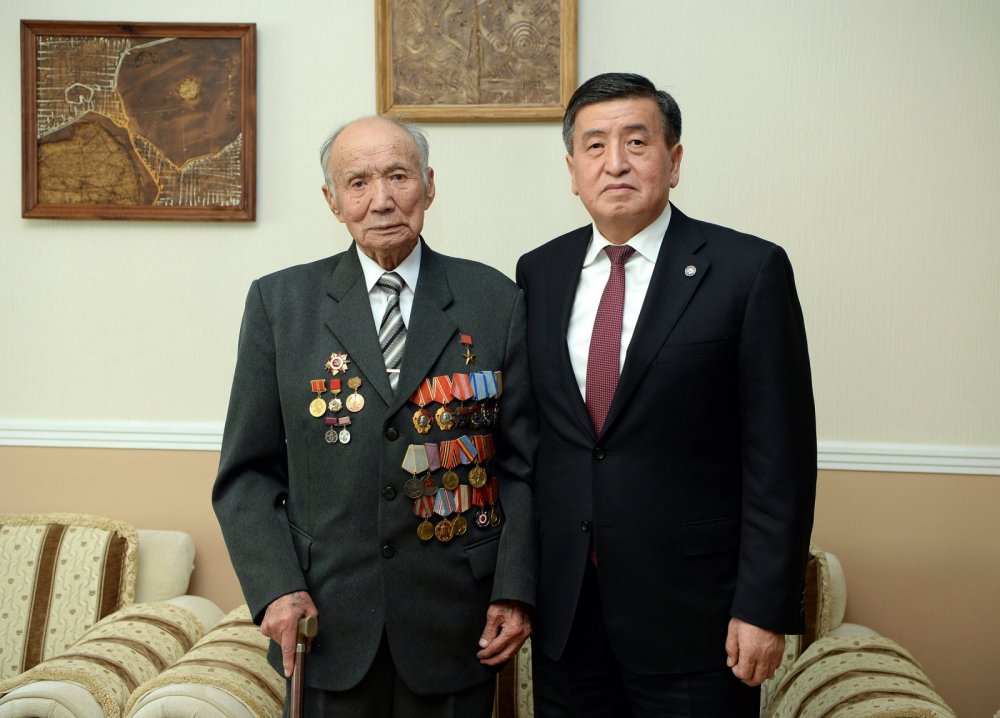 «Сиз сыяктуу адамдардын арты менен биз бүгүн Жеңиш күнүн белгилеп жатабыз. Сиздин муундун каармандыгы менен өлкөбүз согуштан кийинки кыйынчылыктарды жеңип чыкты. Майдандан жеңиш менен кайтып келип, Сиз өлкөбүз үчүн кайратмандык менен эмгектендиңиз», – деп баса белгиледи Сооронбай Жээнбеков.