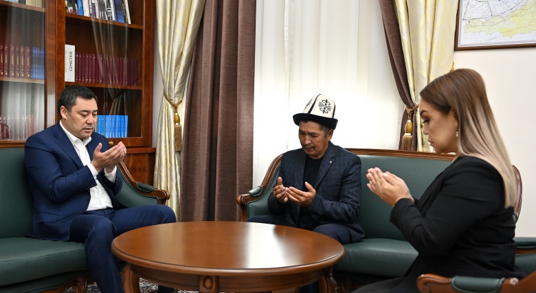 Кыргыз Республикасынын президенти Садыр Жапаров бүгүн, 5-октябрда, 2020-жылдын октябрь окуялары учурунда каза болгон Алтынбек уулу Үмүтбектин үй-бүлөсү – атасы Алтынбек Жуматаев жана эжеси Инаят Жээналиева менен жолугушту.