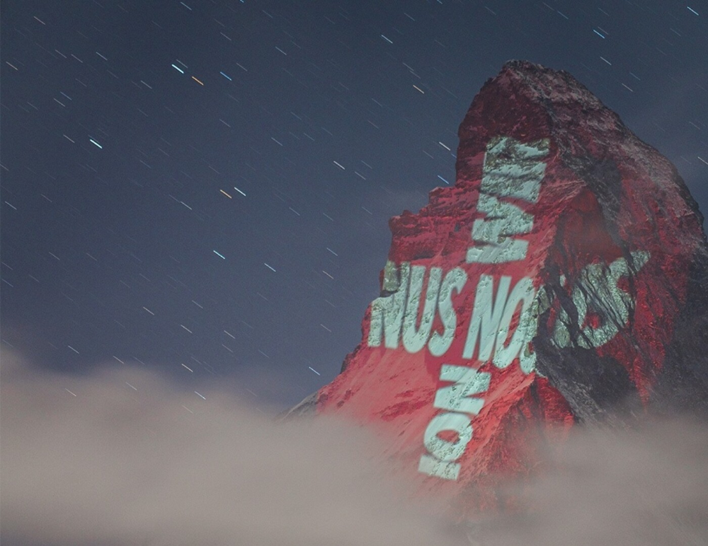 Швейцариянын Церматт айылынын жашоочулары Маттерхорн тоосуна проекциялык экран орнотушуп, ага "Үйдө бол!", "Азыр кыялдан, кийин саякатта", "Үмүт" деген сөздөрдү жазышкан. Бул тууралуу чет элдик маалымат булактар жазып чыкты.