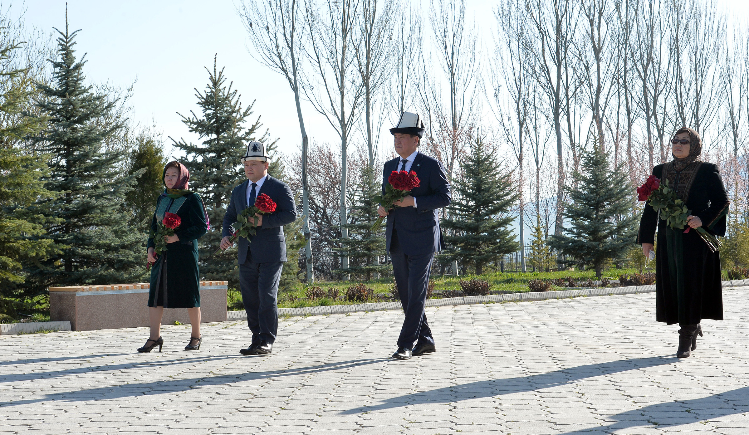 Мамлекет башчысы «Ата-Бейит» Улуттук тарыхый-мемориалдык комплексинде 2010-жылдагы элдик Апрель революциясынын баатырларын эскерүү мемориалына гүл койду. Куран окутулду.