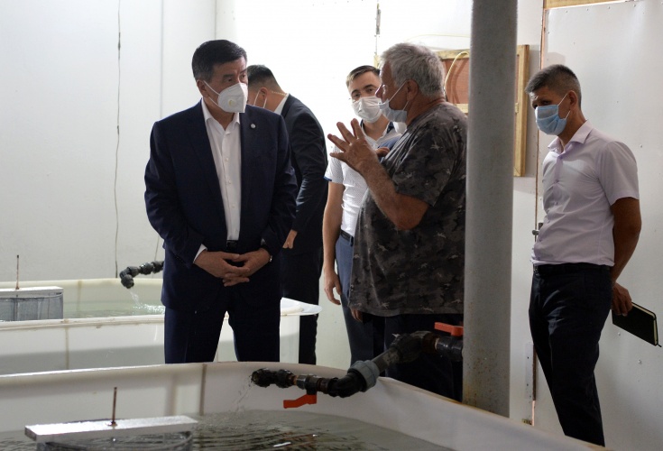 Мамлекет башчысы осетр икраларын, форелден ар кандай продукцияларды жана чала фабрикаттарды өндүргөн «Аква Сервис» ЖЧКсы ишканасына барды. Өндүрүлгөн продукция ички рынокко сатылат, ошондой эле Россия жана Казакстан рынокторуна дагы экспорттолот.
