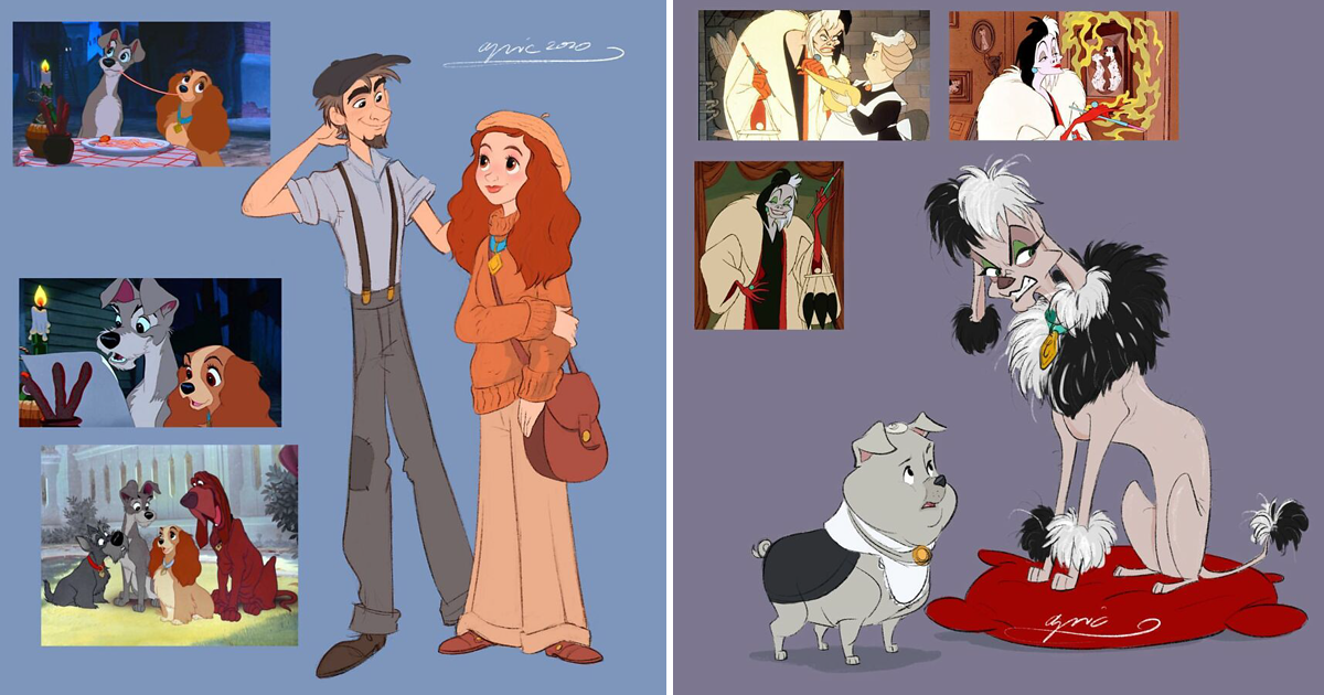 Сүрөтчү Алекс Пик Дисней студиясынын мультфильмдеги каармандарын жаңыртып, жаныбарларды адамга, ал эми адамдарды жаныбарга айлантууну чечти. Алардын туунудусу төмөндө көрсөтүлгөн.