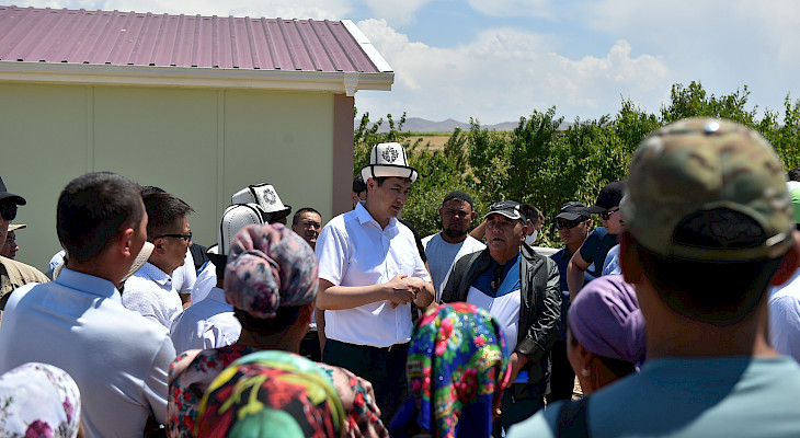 Баткен облусуна сапарынын жүрүшүндө министрлер кабинетинин төрагасы Лейлек районунун Кулунду жана Сада айылынын тургундары менен жолугушуп, алардын көйгөйлүү маселелерин укту.