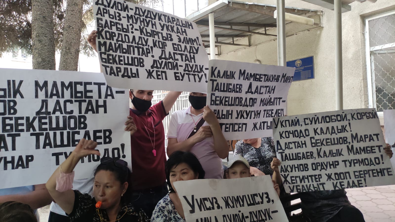 «Дастан Бекешев бизди сабатсыз, көчөдөн жүргөн адамдар деп айтып келет. Ал жада калса бул уюмдагылардын баары менен соттошуп чыккан», - деди митингге чыккандардын бири.