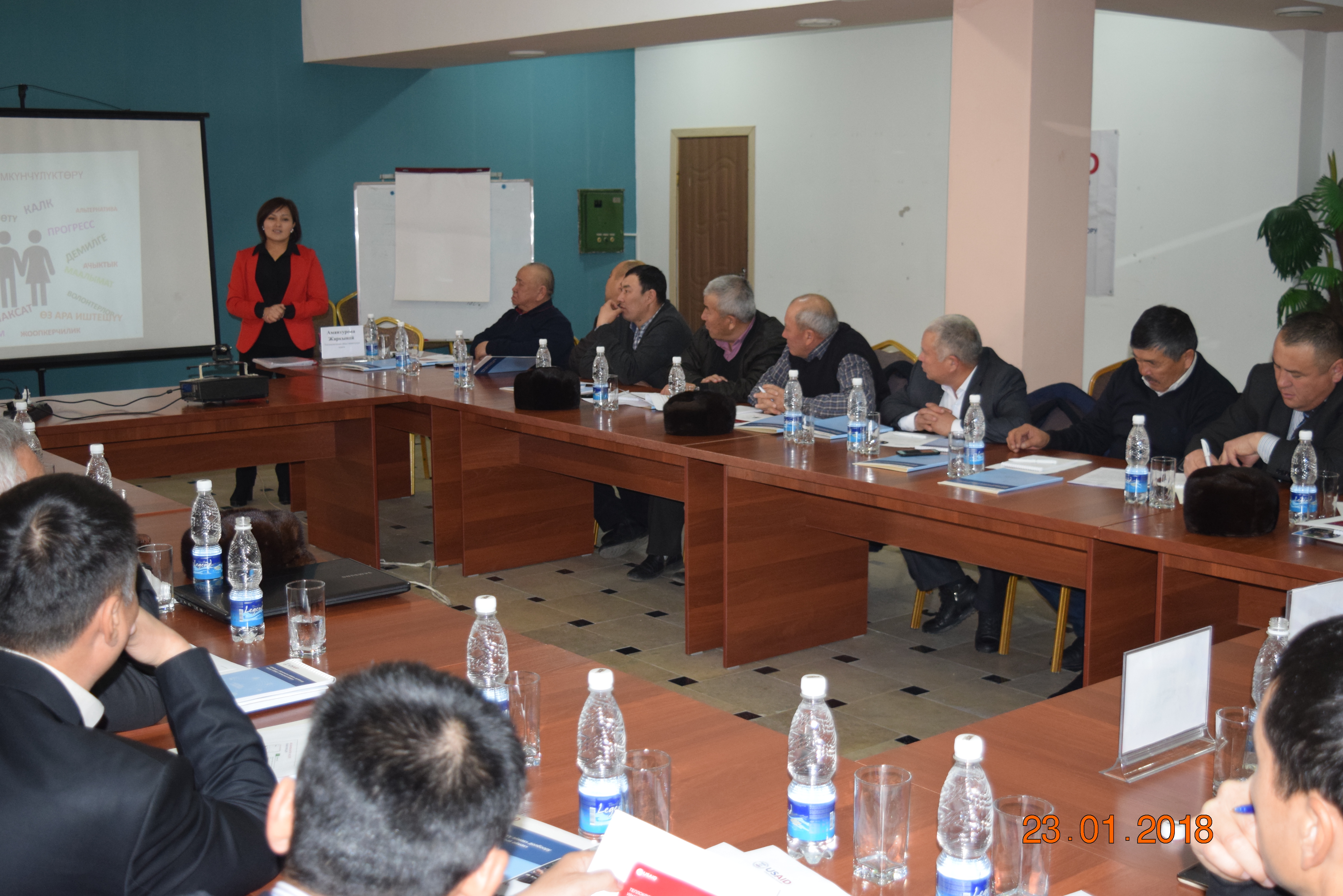 Аталган окууга областтагы сегиз айыл өкмөтүнүн башчылары катышып, айыл бийликтери менен калктын ортосундагы карым-катнашты, өз ара тыгыз иш алып барууну жолго коюу боюнча Ысык-Көл областынын Аксуу районуна караштуу Аксуу айыл өкмөтүнүн мамлекеттик тил саясатын өнүктүрүү боюнча адиси жана USAIDддин “Ийгиликтүү аймак” долбоорунун демилгечи тобунун мүчөсү Жаркын Амантурова тажрыйбасын бөлүштү.