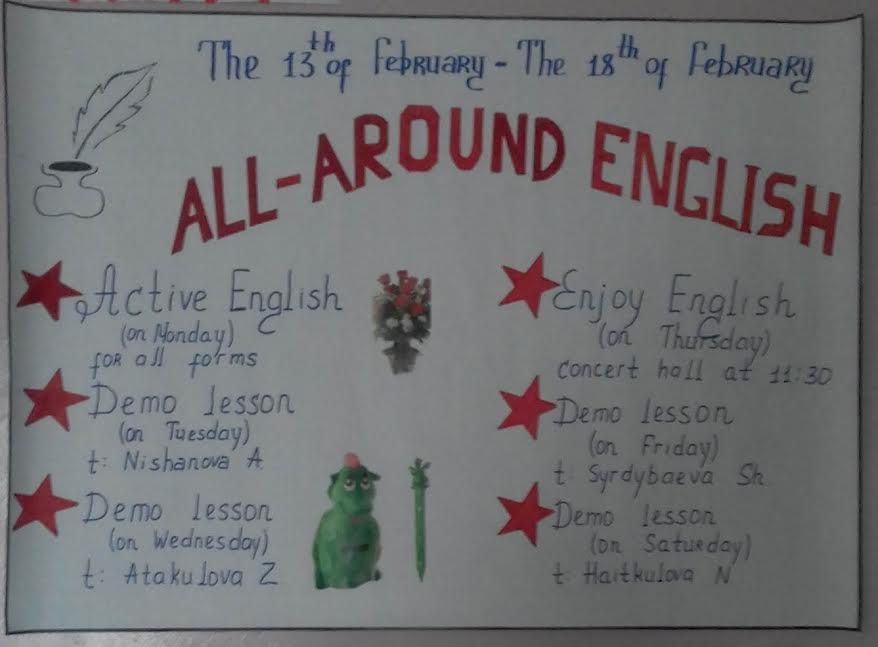 Анын айтымында, жумалык окуучулар арасында уюштурулган ар кандай кызыктуу иш-чаралар менен коштолуп, англис тилине болгон жандуу кызыгууну арттырды.