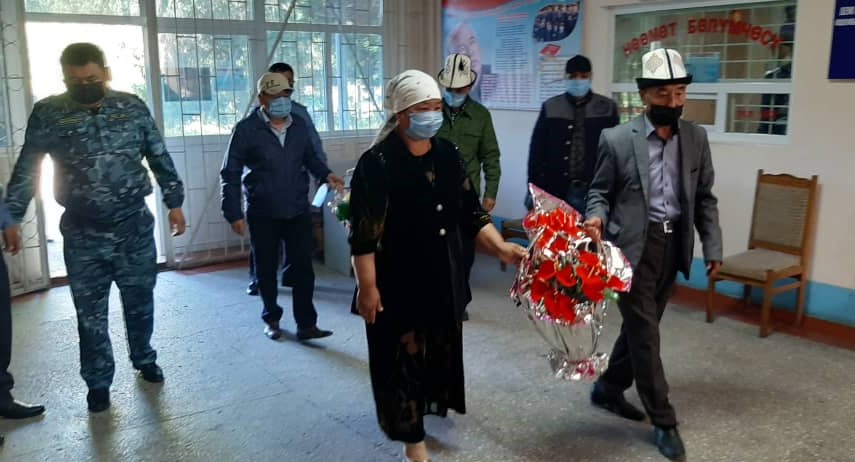 Ал эми Жалал-Абад ШИИБдин кызматкерлери жол кыймылынын коопсуздугун камсыздоо учурунда куралдуу террорчулардын колунан 45 жашында каза болгон милициянын старшинасы Мамасадык Турсунбаевдин үй-бүлөсүнөн кабар алышып, материалдык жардам көрсөтүштү.