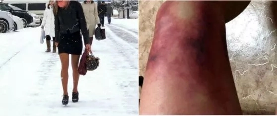 Казакстандын Астана шаарында 4 курстун студент кызы бутуна капрон колготки кийип бутун үшүккө алдырып алган.