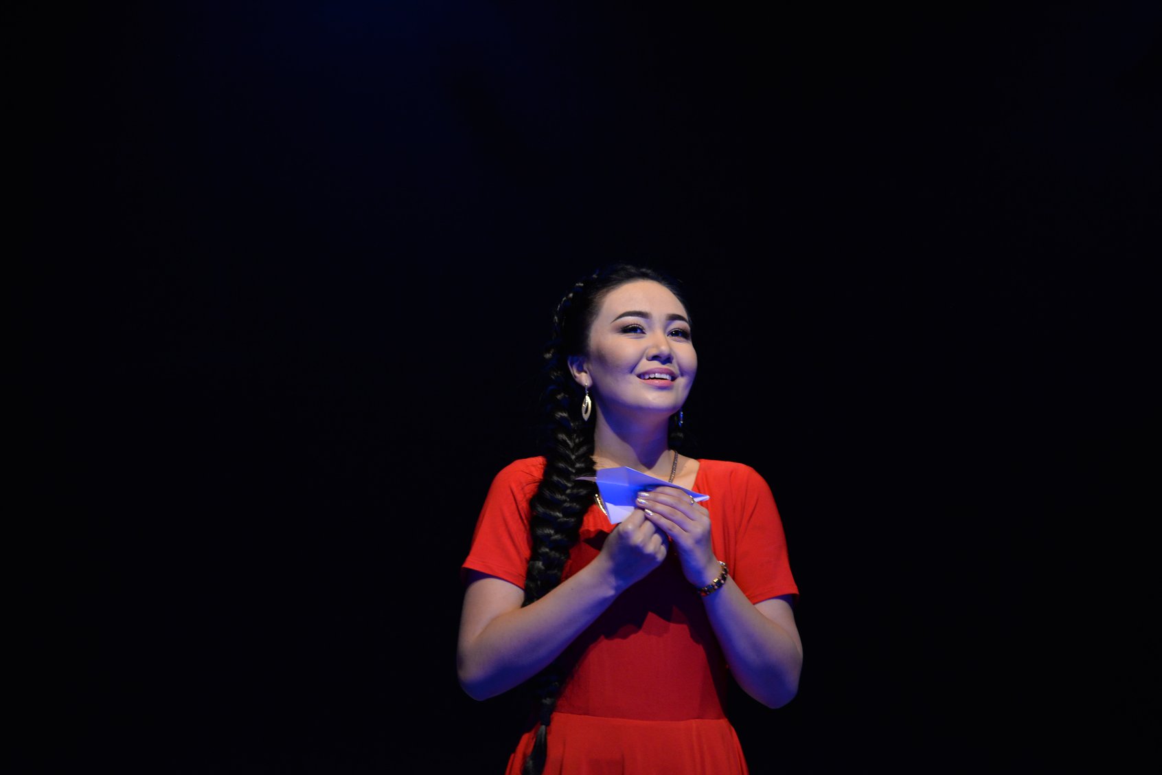 Бир оркойгон катачылык, бир убакта эле сахнадан сахнаны ача бербеген арзан көйнөктөрдү кийген кыздары менен кошо Самара айым желбиреп бийлеп чыга келди. Колдорунда кагаздан жасалган илегилекпи же балдар кагаздан жасап ойногон самолёттун эскизиби, айтор бийлеп бүтөөрдүн алдында, Самара айым баш болуп, колундагы кагаздан жасалган “илегилегин”, элге карата ыргытып жиберип чыгып кетишти.