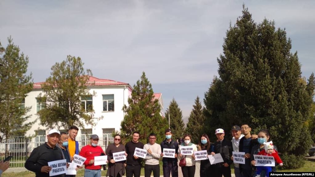 Акцияга чыккандар «#Биз иштегибиз келет» деген жазууларды кармап турушту.