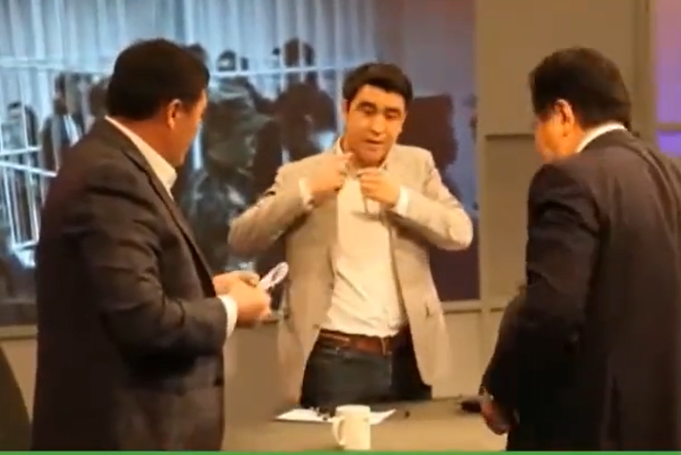Видеого Камчыбек Ташиев (учурда УКМКнын башчысы, ошол учурда Жогорку Кеңешке талапкерлигин коюп жаткан), Тайырбек Сарпашев (МККнын экс-башчысы, ошол кезде биринчи вице-премьер-министр) жана Жанар Акаев (азыр Жогорку Кеңештин депутаты, ошол учурда "Азаттык" журналисти).