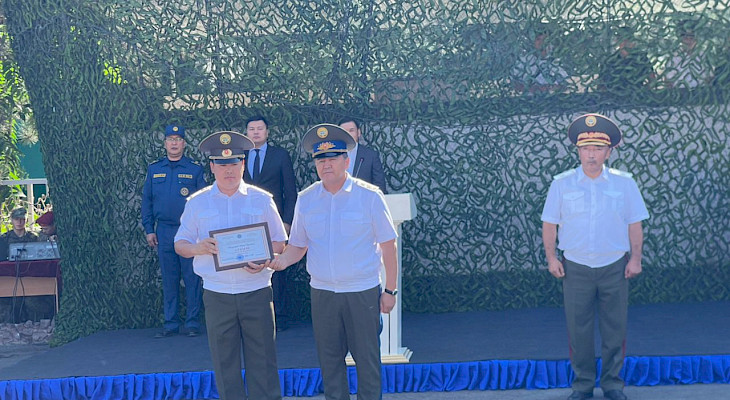 Жыйынтыгында УКМК башчысы министрлер кабинетинин атынан өзгөчөлөнгөн кызматкерлерге сыйлыктарды тапшырды.