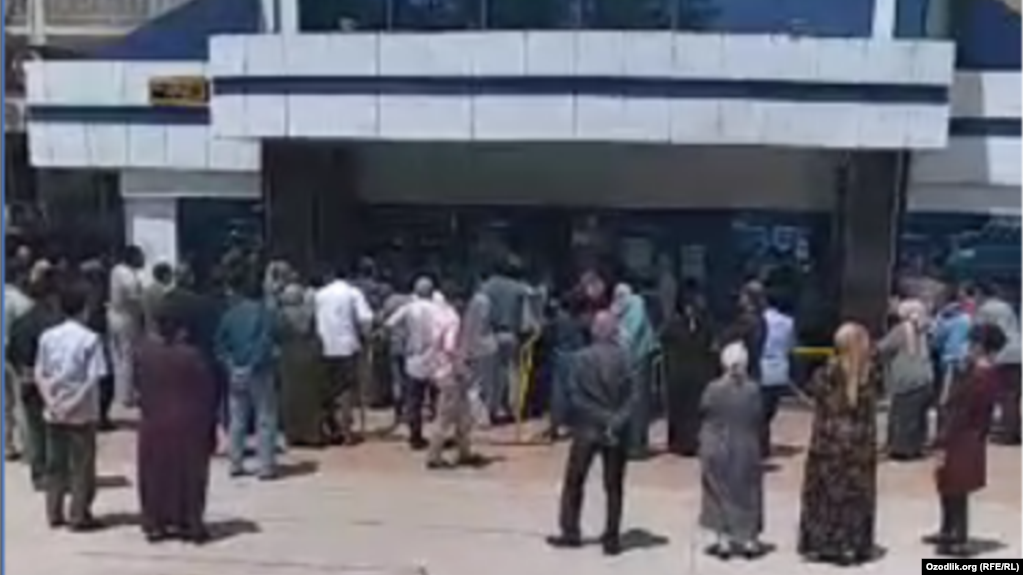 Ташкентте карантин маалында үйдөн чыгууга тыюу салынган пенсионерлер пенсия алуу үчүн “Халк банк” филиалдарынын алдында узун кезекке турушууда. Бул тууралуу Борбордук Азия жаңылыктары жазып чыкты.
