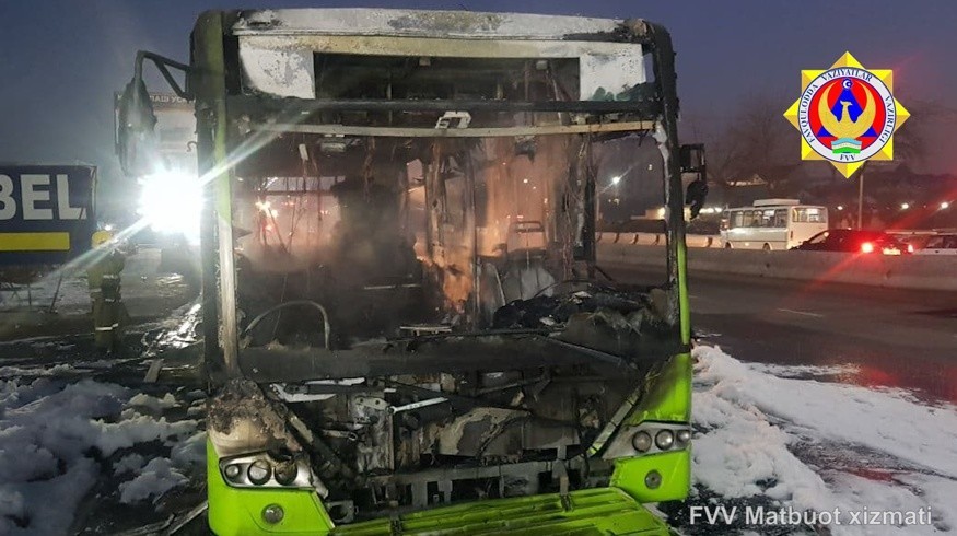 Бүгүн, 24-ноябрда эртең мененки саат 06:13 чамасында Ташкент шаарында жүргүнчүлөрдү ташыган автобус өрттөндү. Өлкөнүн Өзгөчө кырдаалдар министрлигинин маалыматы боюнча, № 116 автобустун айдоочусу алгачкы жүргүнчүлөрдү алуу үчүн бара жатканда өрт чыккан.