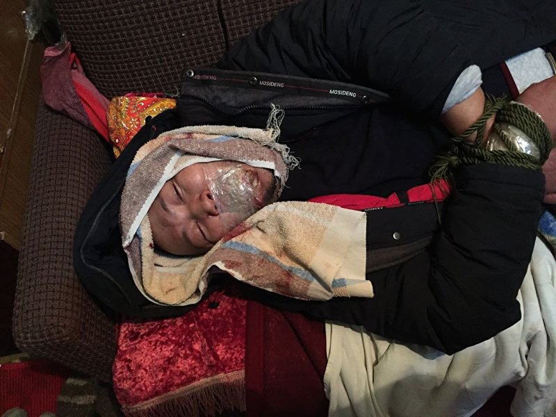 "Конокко барып кайра Ошко жөнөйүн деп жатсам "Оштогу бир досума белек берип жиберейин, үйгө жүр" деп калды. Жаман оюм жок бардым. Ошол жерден 28 жаштагы Хаким аттуу уулу темир менен башка чапты. Анан дагы бир тажик жараны бар экен ошол үчөөлөп мени тепкилей башташты. Эсимди жоготуп койдум. Өзүмө келип ойгонгондо бычак такап "карызым бар эле акча салгыла деп айт" деген буйрук берди", — деди Калбаев.