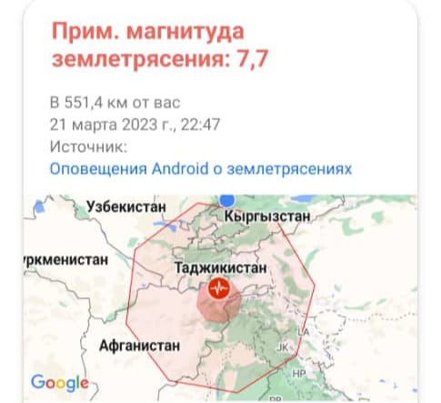 Маалым болгондой, Тажикстанда күчү 7,7 баллга жеткен абдан күчтүү жер титирөө катталды.