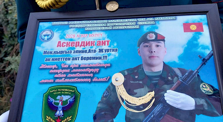 Тажик тараптын Кыргызстанга кол салуусунан курман болгон Амангелди Балыкчиевдин сөөгү Чүй облусунун Кемин районунда жерге берилди.