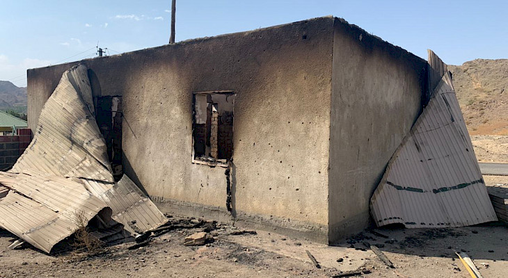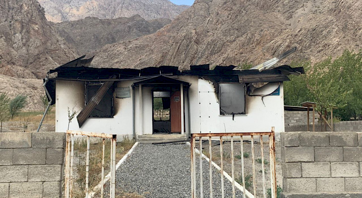 4. Баткен районунун Достук айылындагы ФАП: Имарат толугу менен өрттөлгөн, анын ичиндеги медициналык жабдуулар ошондой эле катуу жана жумшак эмеректер жараксыз абалда. Имаратты кайра куруу керек.