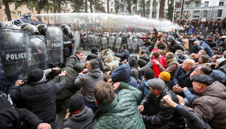 Грузиянын укук коргоо органдары чет элдик агенттер жөнүндөгү мыйзамдын кабыл алынышына каршы чыккандарды парламенттин Руставели проспектисиндеги имаратынан сүрүп чыгарууга жетишти. Бул тууралуу грузин маалымат каражаттары жазып чыгышты.