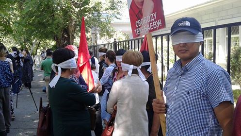 Эртең менен саат 9да сот имаратынын алдына келген колдоочулары дагы эле кетпей соттун алдында турушат. «Текебаевге боштондук!», «Чотоновго боштондук!» деп кыйкырып, «Сот эл алдында ачык өтсүн!» деген талап коюшууда. Колдоочулардын өкүлдөрү көзүнө ак кездеме байлап турушат.