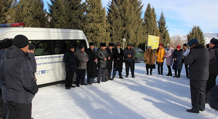 "Кадамжай РИИБнин милициянын көчмө кабылдамасы түзүлгөн графиктин негизинде район аймагынан алыс жайгашкан айыл тургундарынын арыз-даттанууларын кабыл алат. Милициянын көчмө кабылдамасынын ишмердүүлүгүнө ыраазы болгон эл мындан ары да милиция кызматкерлери менен биргеликте иш жүргүзөөрүн белгилеп кетти", - деп айтылат маалыматта.