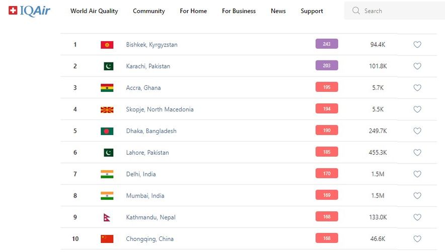 Муну менен Бишкек шаары абанын сапаты жана атмосферасынын булгануусу боюнча дүйнөлүк рейтингде 1-орунда турат.