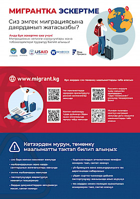 Эскертме Кыргыз Республикасында USAID, Winrock International жана Прогресс фондунун колдоосу менен «Чет өлкөгө иштөө максатында бара жаткан Кыргыз Республикасынын жарандарынын укуктук сабаттуулугун жогорулатуу боюнча маалыматтык кампания» долбоорунун алкагында басылып чыкты.