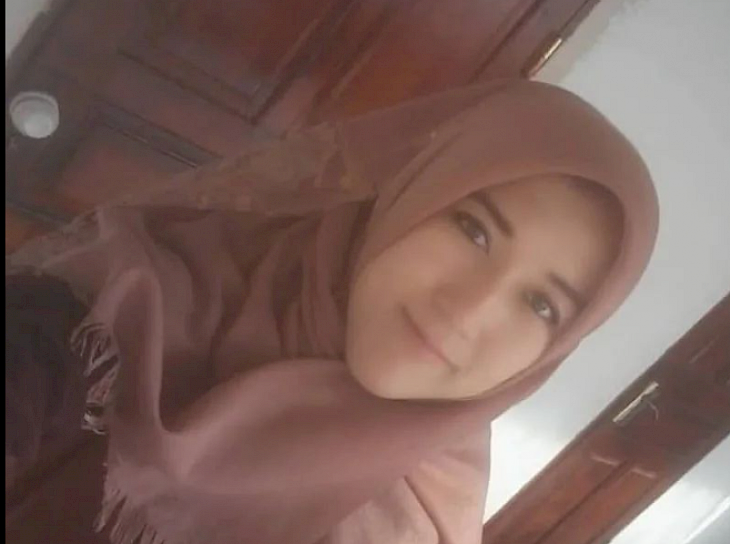 Кийген кийимдери: Башында кара жоолук, үстүндө күрөң түстөгү көйнөк (хиджап), бутунда ак түстөгү кроссовки болгон.