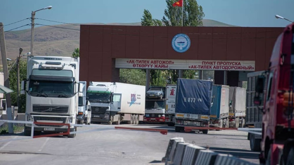 “Ак-Тилек” өткөрмө бекетинде 20-августтан баштап жүк ташуучу автоунаалардын узун кезеги пайда боло баштаган.