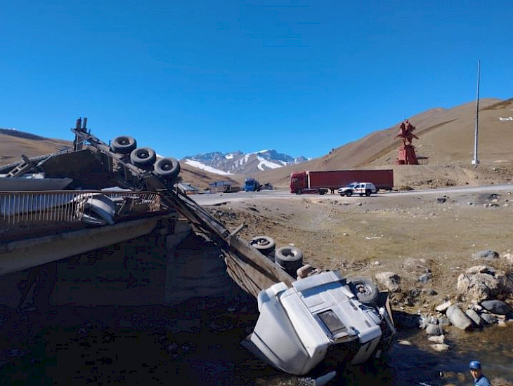 Өтмөк ашуусунда жүк ташуучу унаа көпүрөдөн кулап, бир адам жабыркады. Бул тууралуу ӨКМдин басма сөз кызматы билдирди.