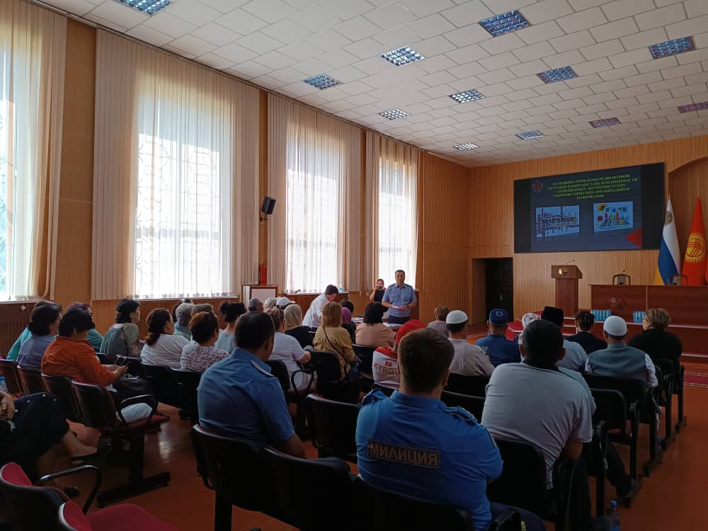 Маалыматка караганда, иш-чара 16-майда Токмокто аксакалдар кеңештеринин, аялдар кеңештеринин, жаштар комитеттеринин, жергиликтүү өз алдынча башкаруу органдарынын кызматкерлеринин, мугалимдердин башка жарандык коомчулуктун өкүлдөрүнүн жана милиция кызматкерлеринин катышуусунда өткөрүлгөн.