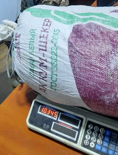11-сентябрга караган түнү саат 01:20 чамасында Токтогул районунун аймагында ат минип келе жаткан 25 жаштагы Б.Э. Токтогул РИИБдин БМЖКККнын кызматкерлери тарабынан текшерилген. Текшерүү учурунда Б.Э. атына артып келе жаткан 2 даана капка салынган салмагы 10 килогграмм 345 грамм түзгөн, чөп формасындагы өзгөчө кескин жыты бар баӊгизатына окшогон зат алынган.