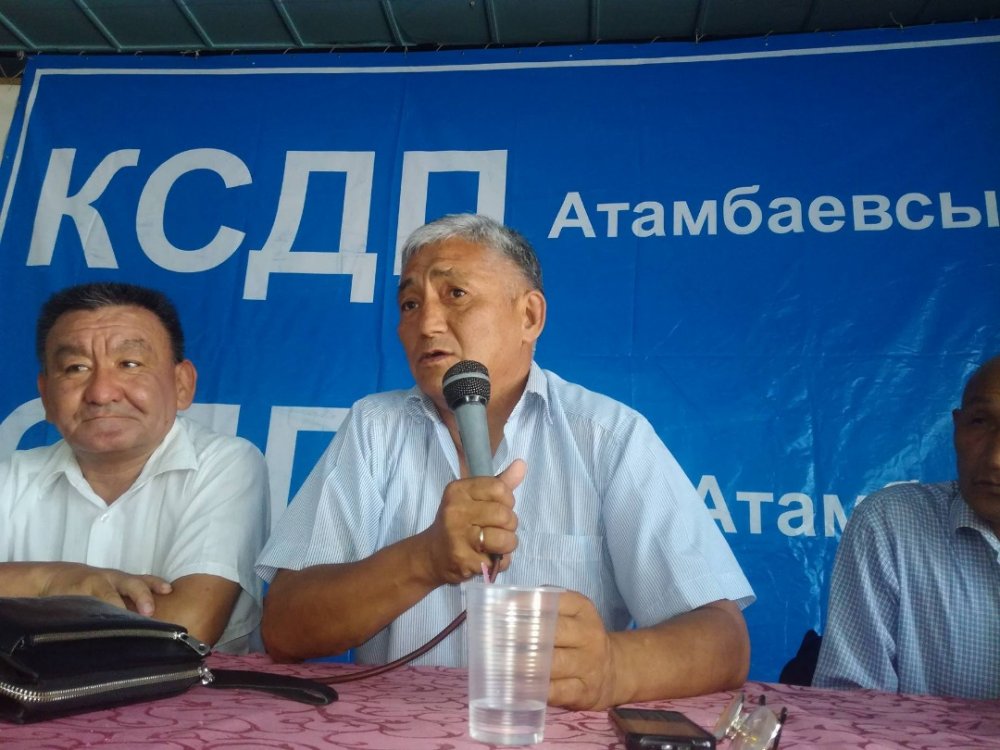 Токтогулдагы “Атамбаевсиз КСДП” жыйыны болуп, ага келген токтогулдуктар “Биз төрт кыйын КСДПчы Сарпашев, Момуналиев, Артыкбаев, Кодурановалардан уялып жатабыз. Элдин баары эле ишенген партия чоңдоруңар коррупционер болуп жатат деп шылдың кылып бүтмөй болду. Партиянын тазаланышын колдойбуз” деген муңун айтышыптыр.