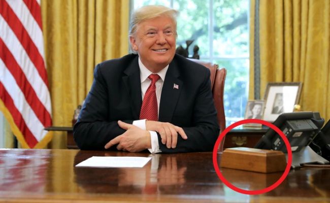 Трамптын биринчи президенттик мөөнөтүндө анын жумушчу столу мындай түзүлүш менен жабдылган болчу. Бирок 2021-2025-жылдары АКШнын президенти болгон Жо Байден баскычты алып салууну буйруган. Аталган баскычты басканда кызматкерлер бөлмөгө газдалган суусундук алып келишчү.