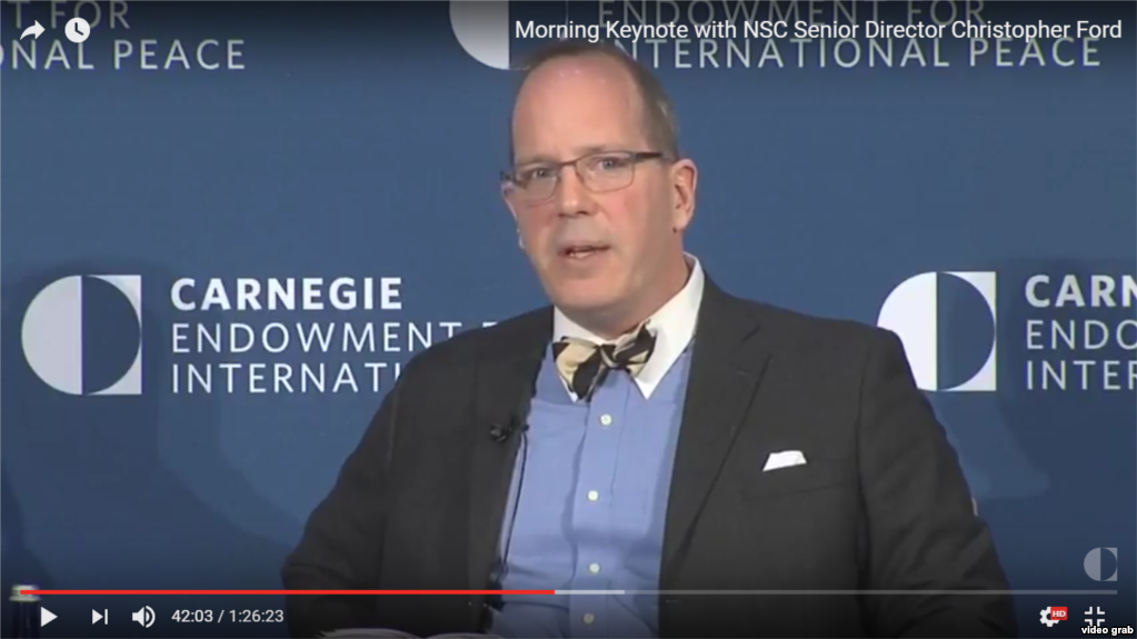 Форд андан сырткары администрация Орусиянын канаттуу ракеталарын өркүндөтүү боюнча жакындагы аракеттерине жооп берүү ыктымалдыктарын караштырып жатканын кошумчалады. Анын баамында бул орто аралыктагы өзөктүк куралдарды кыскартуу боюнча Вашингтон менен Москванын ортосунда түзүлгөн 1987-жылдагы келишимдин шарттарын бузат.