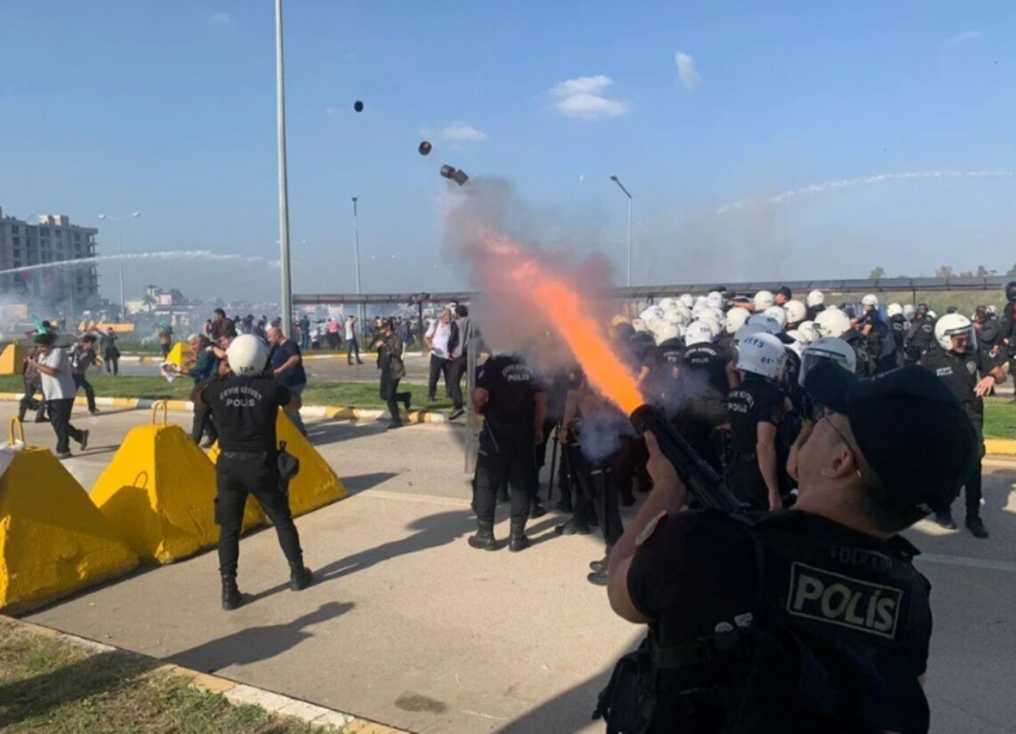 Түркияда полиция Адана шаарынын жанындагы АКШнын Инжирлик авиабазасына кирүүгө аракет кылган демонстранттарга каршы көздөн жаш агызуучу газ колдонду.
