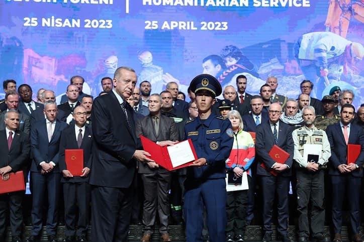 2023-жылдын 25-апрелинде Түркия Республикасынын Анкара шаарындагы Президенттик сарайда Түркиянын түштүк-чыгышында үстүбүздөгү жылдын 6-февралында болгон жер титирөөлөрдөн улам куткаруу иштеринде жана кырсыктын кесепеттерин жоюуда олуттуу жардам көрсөткөн чет өлкөлүк издөө-куткаруу топторуна жана дипломаттарга Мамлекеттик сыйлыктарды тапшыруу аземи болуп өттү.