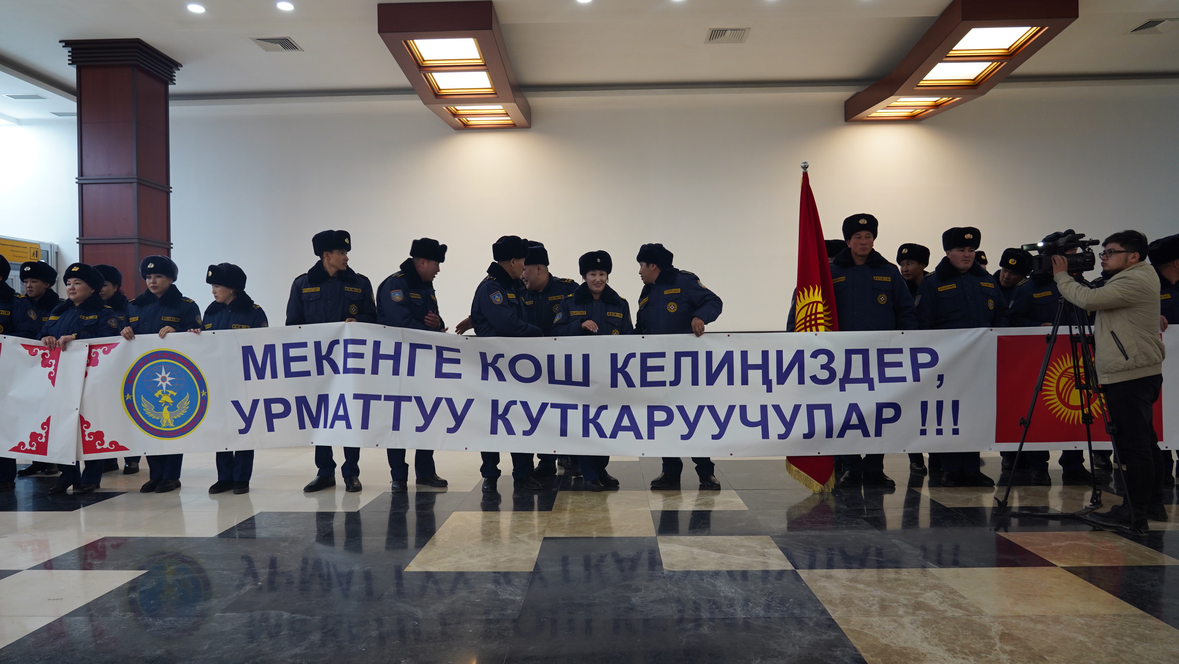 «Манас» эл аралык аэропортунда куткаруучуларды өзгөчө кырдаалдар министрлигинин өздүк курамы жана жакындары тосуп алды.
