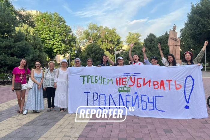 «Бишкекте троллейбустар 74 жылдан бери жүрөт. Бул арада ал шаардын бир бөлүгүнө айланды. Ага карабай мэрия 19-июндан тарта өз алдынча троллейбустук линияларды жок кылууда. Айтмакчы, демонтаж дагы эрежелерди бузуу, шаардыктарга зыян келтирүү менен жүрүп жатат. Троллейбустарды ордуна коюуну талап кылабыз», — дейт активисттер.