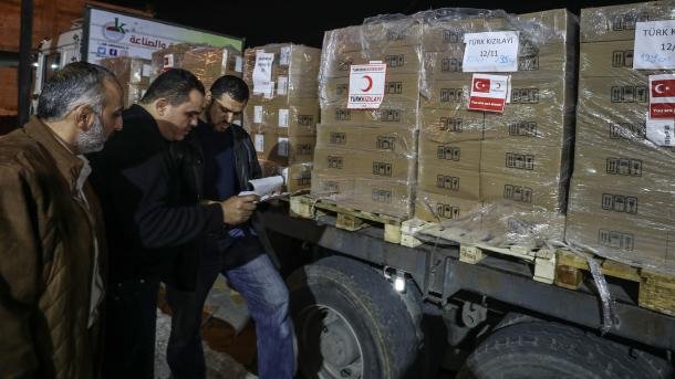 Түрк Кызылайы тарабынан Израилдин блокадасы астындагы Газага жөнөтүлгөн дарыларды ташыган фуралар, шаардын түштүгүндөгү «Керем Эбру Салим» капкасынан кирди.