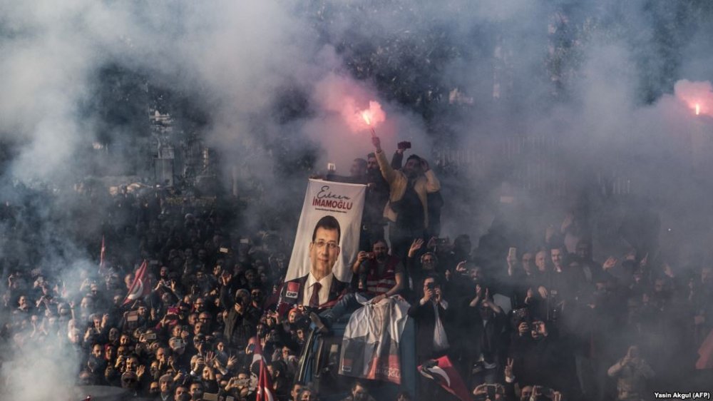 Стамбулда эки жума мурун өткөн мэр шайлоодо оппозициялык Элдик-республикалык партиянын мүчөсү Экрем Имамоглу жеңип чыккан. Бийликтеги АК партиянын («Адилеттүүлүк жана өнүгүү» партиясы) кайра шайлоо өткөрүү жана мандат бербей туруу жөнүндөгү талабына карабай, 17-апрелде Жогорку шайлоо комиссиясы аны Стамбулдун мэри деп жарыялады. Юстиция министрлигинде мандат тапшырылды. Бул жараян оппозициялык партиянын тарапкерлеринин акциясы, майрамдоосу менен коштолду.