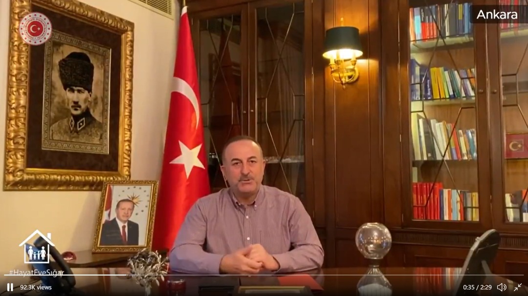 Түркиянын тышкы иштер министри Мевлүт Чавушоглу өзүнүн Твитердеги баракчасына видео-тасма аркылуу чет өлкөдө жашаган Түрк атуулдарына үйлөрдөн чыкпоо чакырыгын салып, Кайрылуу жасады.