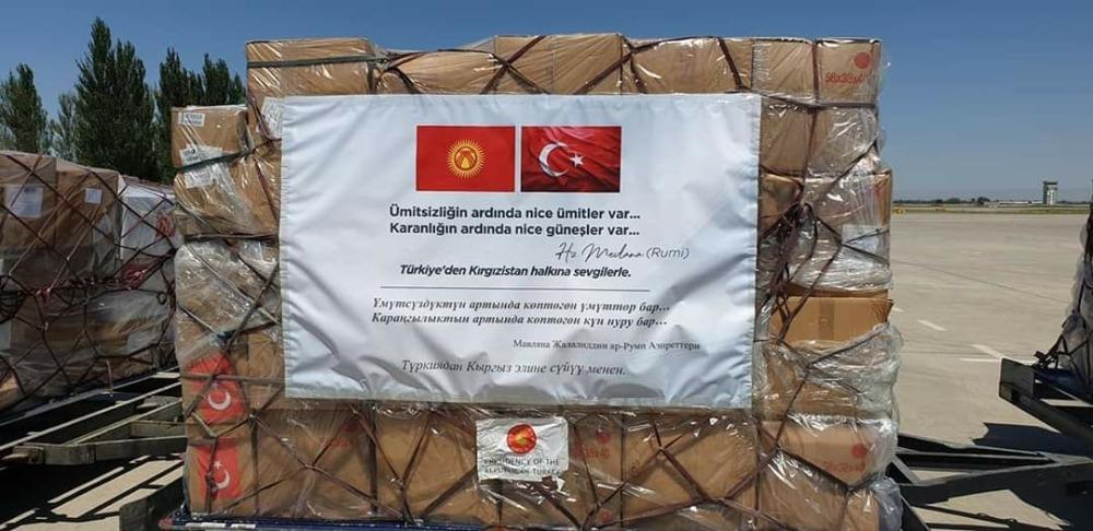 "6-июлда Кыргыз Республикасынын президенти Сооронбай Жээнбековдун Түркия мамлекетинин президенти Реджеп Тайип Эрдоган менен телефон аркылуу сүйлөшүүлөрүнүн ортосунда жетишилген макулдашуулардын алкагында, 2020-жылдын 7-июлунда саламаттык сактоо тармагына гуманитардык жардам берүү боюнча эки мамлекеттин ортосундагы түшүнүшүү Меморандумуна кол коюлган. Коронавируска каршы күрөшүү үчүн гуманитардык жардам төмөнкү медициналык жабдуулардан турат: