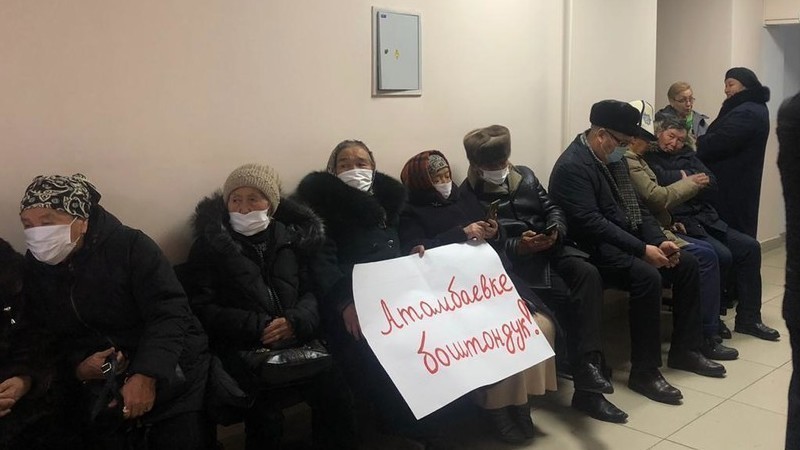 Сот имаратынын ичинде жана сыртында 50дөн ашык адам соттук отурумдун башталышын күтүп жатышат. Айрымдары Атамбаевдин бошотулушун талап кылган плакаттарды көтөрүп турушат.
