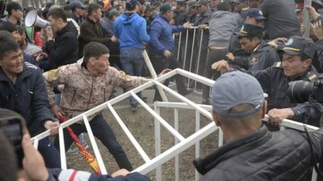 "Чогулгандарга каршы ышкырма гранаттар колдонулду. Абдан агрессивдүү жаш жарандар кармалды”,-деп айтылат милициянын билдирүүсүндө.