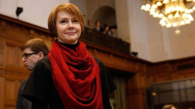 "Бүгүн мен дүйнөлүк соттун алдында турам жана сиздерден коргоону өтүнөм»,-деп баштады өз сөзүн украиналык делегациянын жетектеп келген Елена Зеркаль.